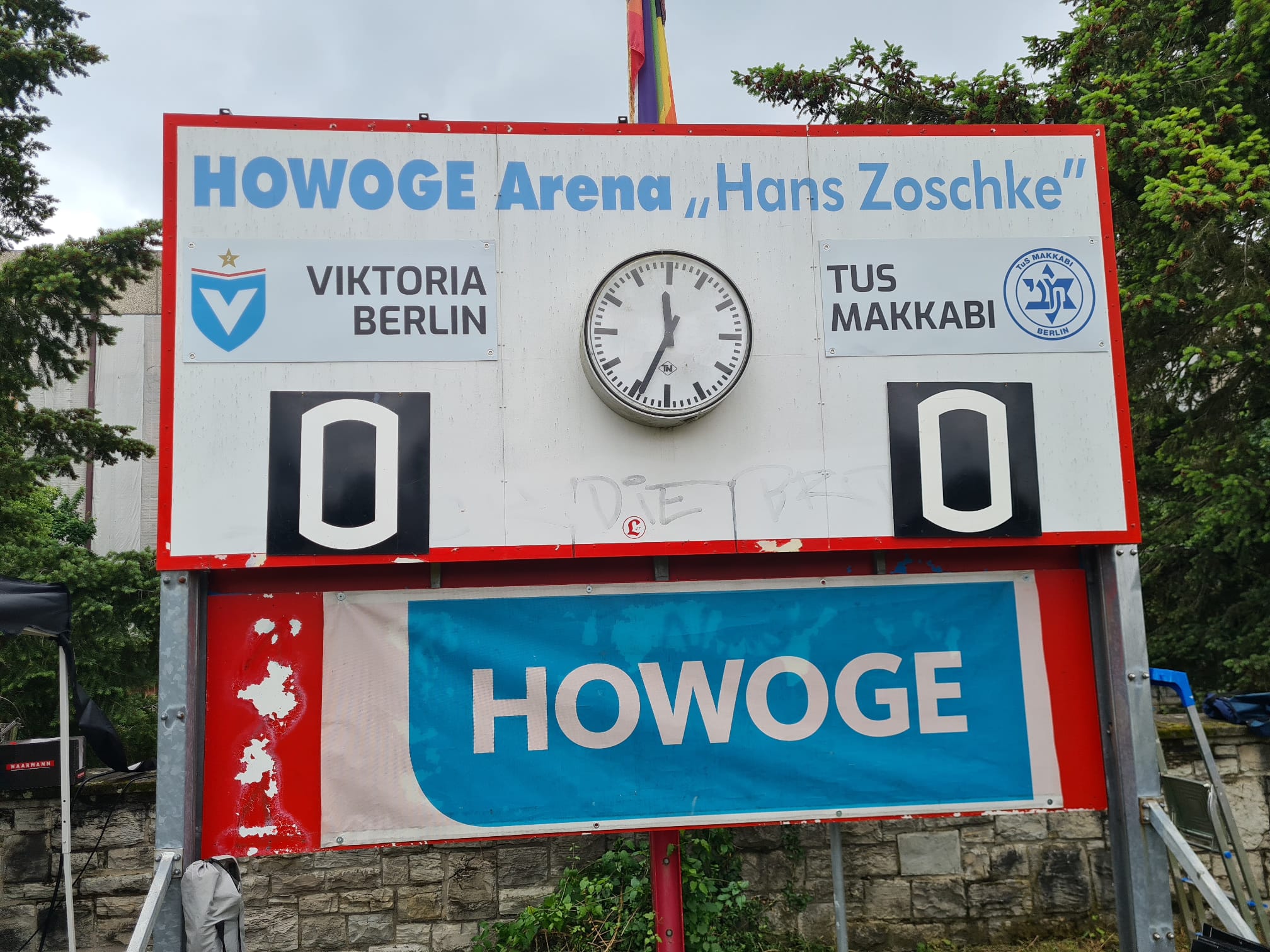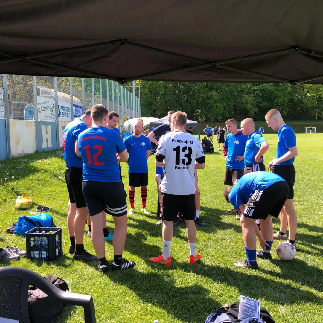 Nachdem die Ansetzung des Landespokalfinales in Berlin zwischen Viktoria Berlin und TuS Makkabi Berlin feststand, planten wir unseren Tag mit eindeutiger Zustimmung der 7 Teilnehmer kurzfristig um und fuhren schon etwas früher in die Hauptstadt. Das „kleine“ Finale in einer sehr unterhaltsamen Partie verfolgten rund 2800 Zuschauer in der Hans-Zoschke-Arena. Wie erwartet, begegneten wir dort auch den üblichen Verdächtigen unter den Fanprojekten, die ebenso gerne wie wir andere Plätze besuchen, und wir schauten zusammen das Spiel. Ein Sonderlob von uns an dieser Stelle für den Torwart von Makkabi Berlin, der mehrere spektakuläre Flugeinlagen auspackte.