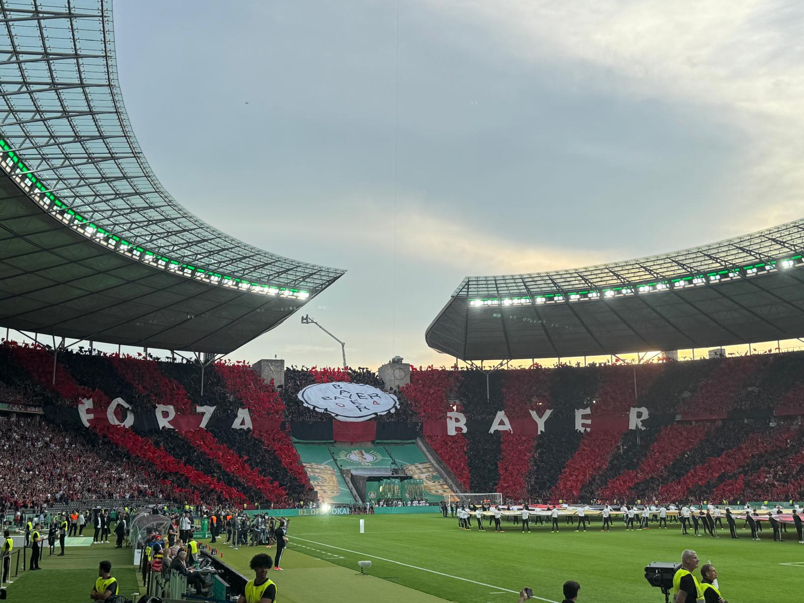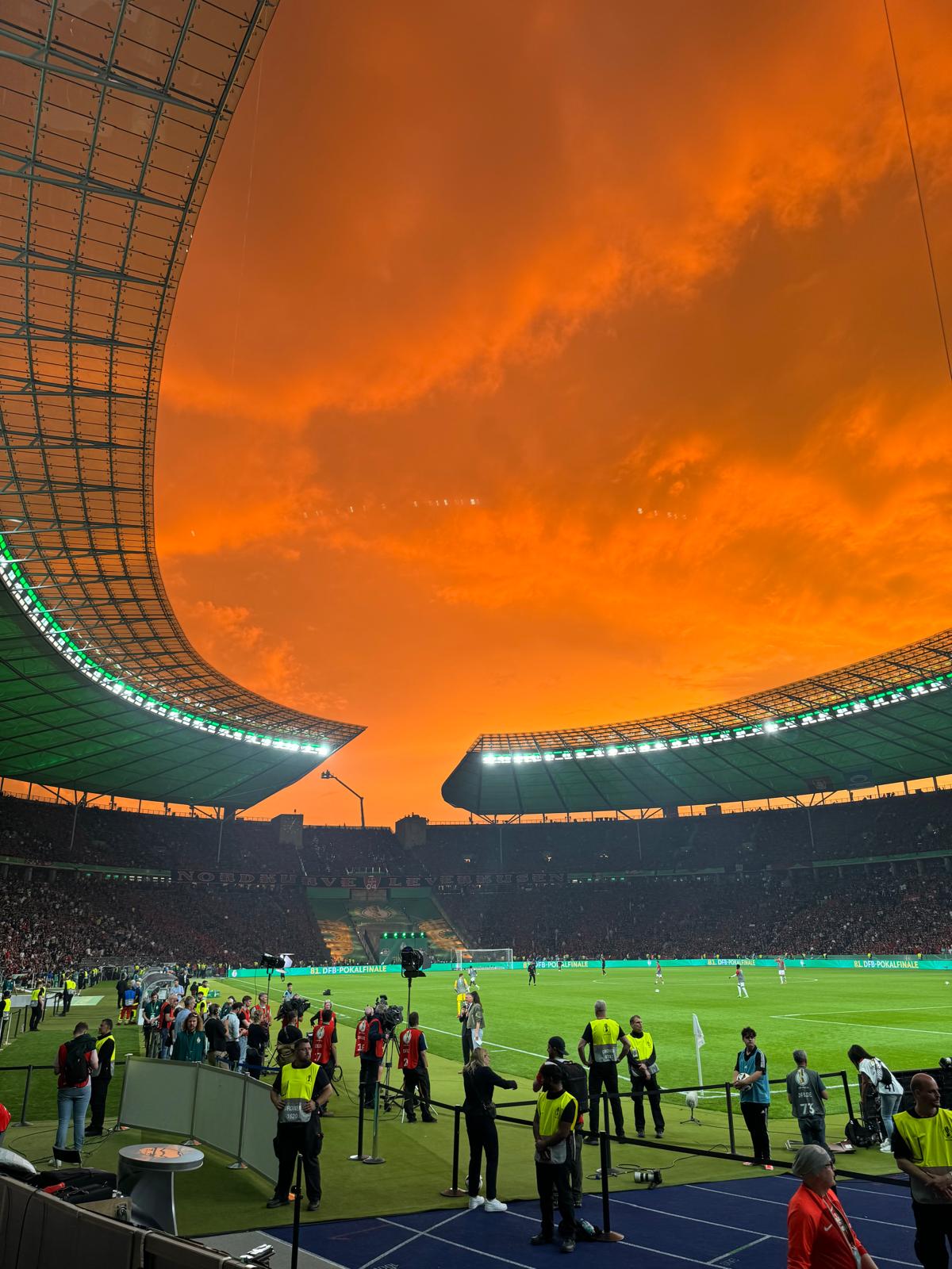 Dort angekommen, boten die Kurven von Leverkusen und Kaiserslautern einen stimmungsvollen Rahmen für das Endspiel im DFB-Pokal. Wir staunten über aufwändige, mehrteilige Choreos, untermalt von viel Rauch und Fackeln. Zwischen dem frischgebackenen Deutschen Meister und dem Zweitligisten aus der Pfalz wurde die Partie auf dem Rasen lange spannend gehalten. Ein absolutes Highlight für uns, was Leverkusen sportlich mit 1:0 verdient für sich entschied und nach der Meisterschaft nun auch den Pokalsieg feiern konnte.